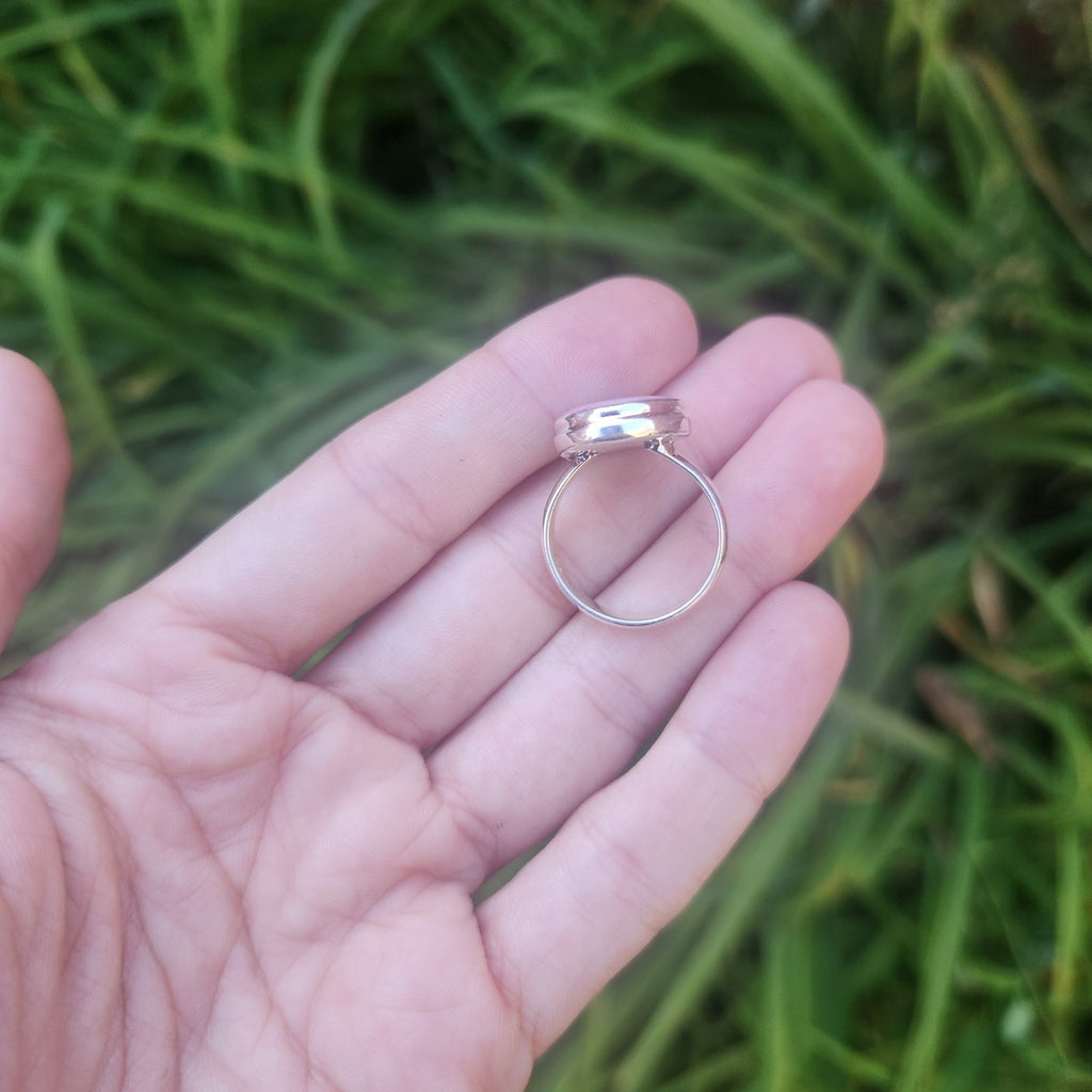 Aurora Opal Stone Ring Sterling Silver Size 7.25