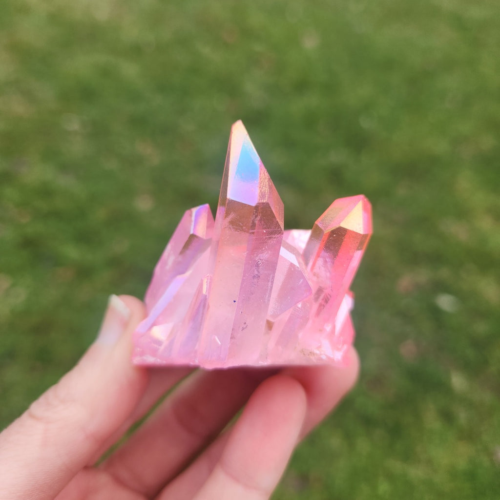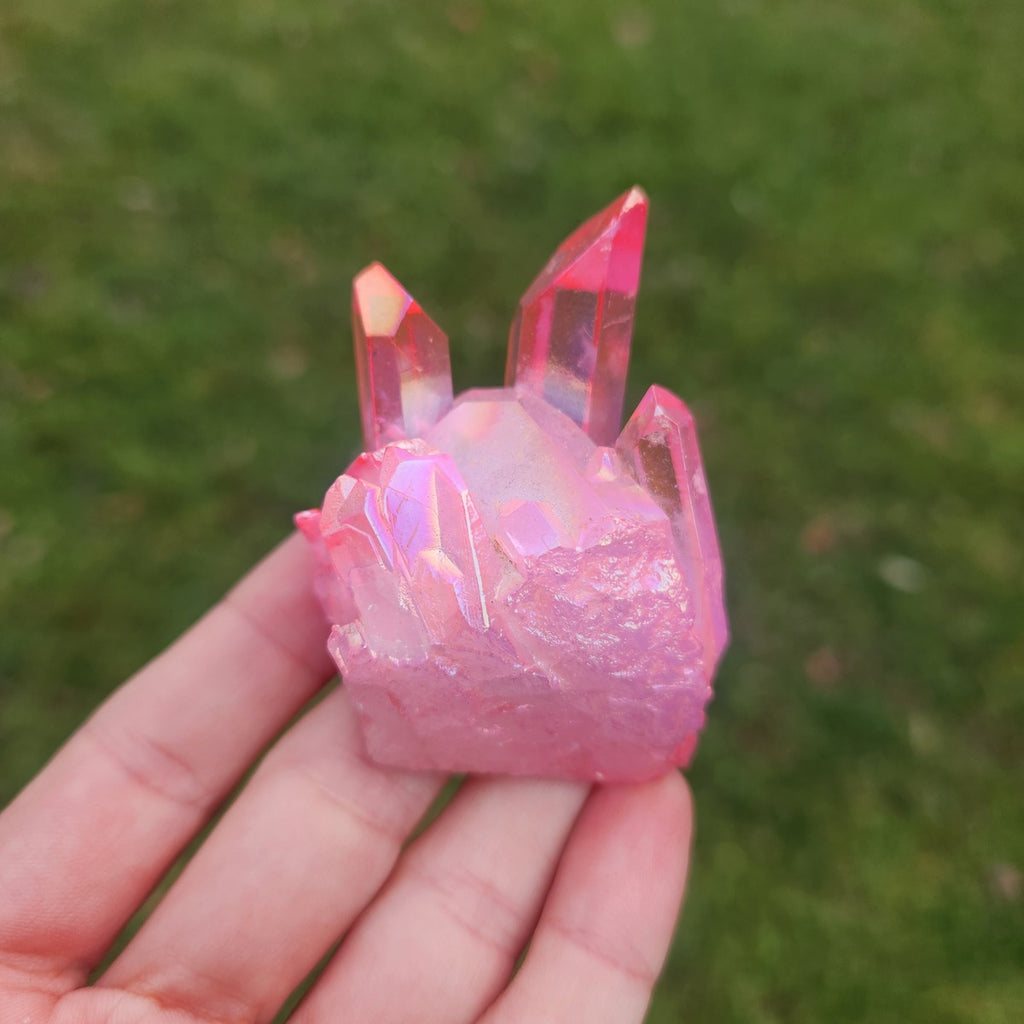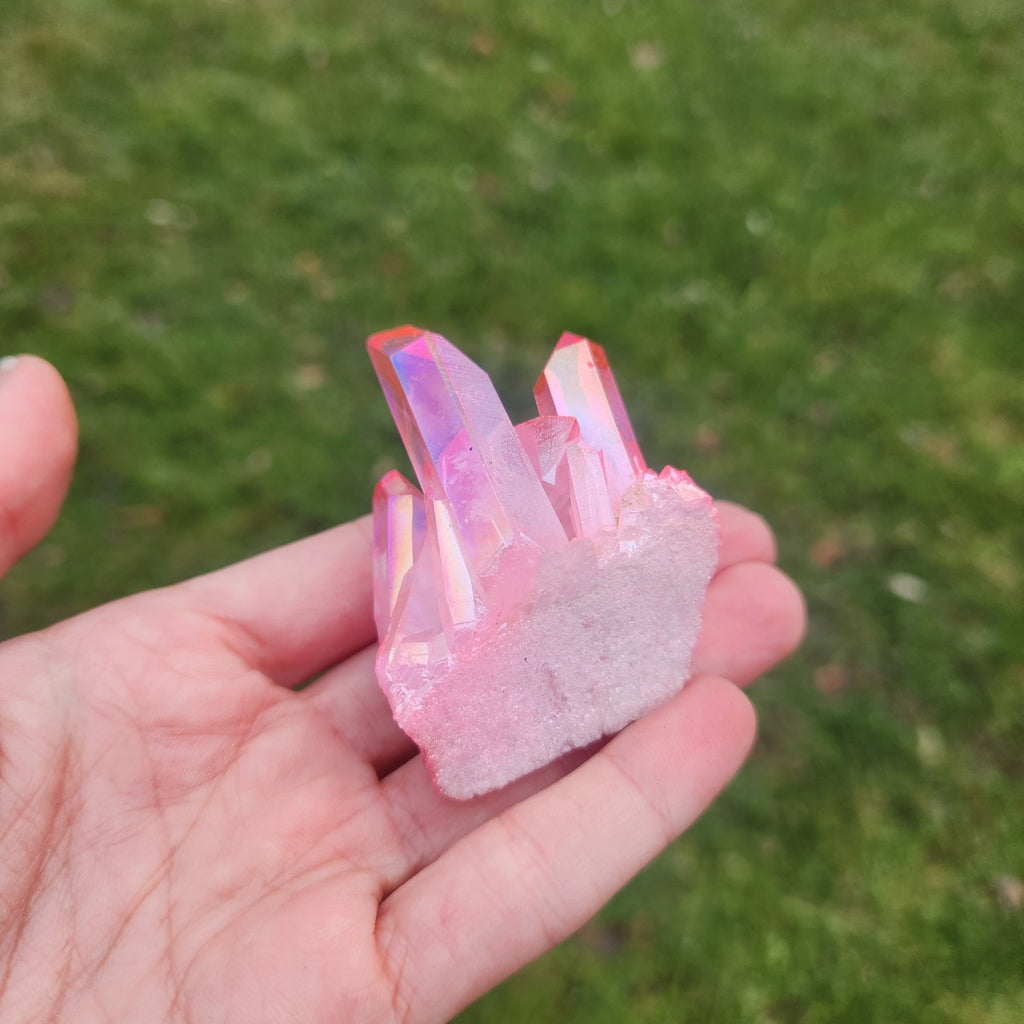Pink Rainbow Aura Quartz Crystal Cluster 1.75"